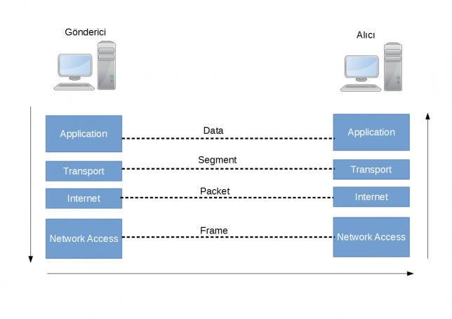 Uç cihazlar (hostlar) arasında veri iletilirken katmanlar arasında ilerledikçe her katmanda belirli bilgiler eklenir. Gönderici bilgisayar için yukarı katmandan aşağı katmana doğru veri ilerler ve her bir katmanda belirli bilgiler eklenir ve aşağı katmana iletilir. Bu işleme kapsülleme (encapsulation) denir. Aynı şekilde alıcı bilgisayar için aşağı katmandan yukarı katmana doğru veri ilerler ve her bir […]